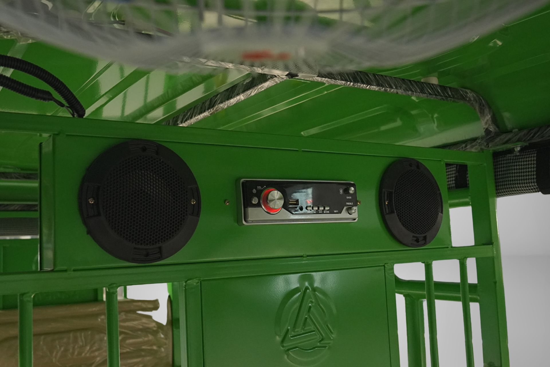 Built-in stereo system with dual speakers for a better travel experience.