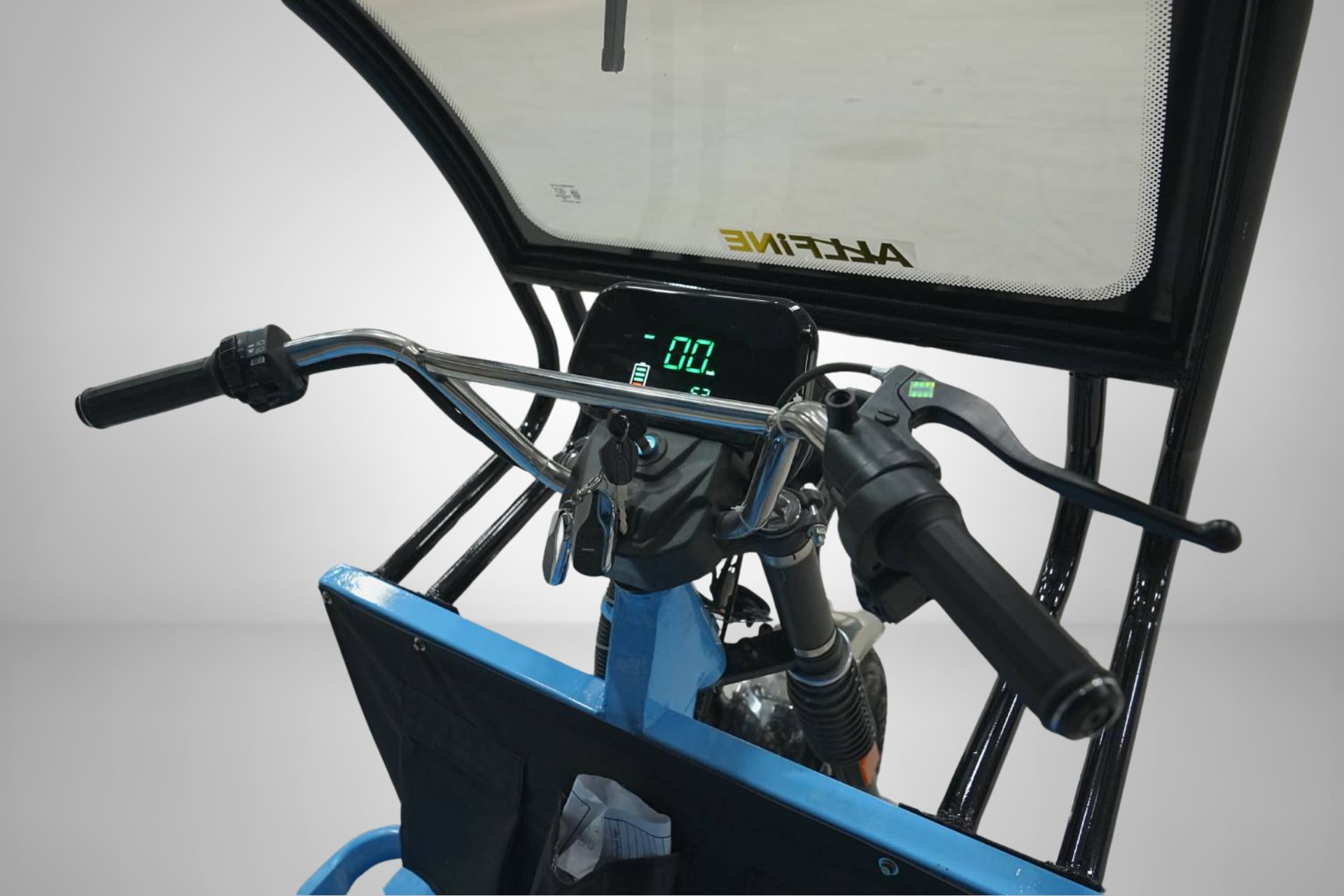 Integrated dashboard with digital feedback and energy optimization indicators – perfect for electric rickshaw in Delhi conditions.